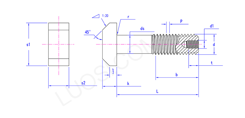 Главата на намалената завртка на завртката со дупка е слична на ромб и може да се заглави во Т-слот за да се фиксира и да не се ротира. Средниот дел од нејзината завртка стана потенка, односно „смалената шипка“, а дупката е исто така дупчат на дното на завртката. Внатрешноста е шуплива.