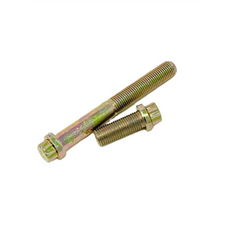 Овие челични завртки со високо затегнувачки прирабници со 12 точки имаат стандардна, практична форма без дополнителни украсни детали. Горниот дел е 12-страна глава, направена да работи со соодветен штекер од 12 точки за затегнување или олабавување. Веднаш под главата има широка, рамна прирабница која работи како вградена машина за перење, така што нема да ви треба посебна машина за перење за повеќето работи. Оската под прирабницата е исправена, со мазни, рамномерни навои што се протегаат до крај за да се вклопат навртки или претходно залепени дупки. Нема груби рабови или бруси што би ја отежнале инсталацијата. Целиот прицврстувач е компактен и цврст, направен да седи рамно на површини за цврсто вклопување. Секое парче има исти точни мерења, така што секое од нив изгледа и се вклопува исто - ова го олеснува користењето за повторени работи на склопување или брзи замени.